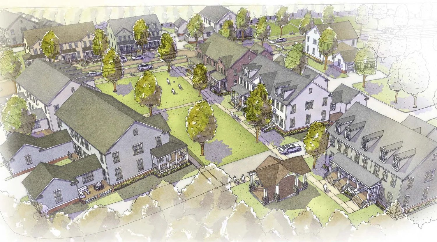 • A concept for roughly 375 housing units on approximately 25 acres, including a mix of apartments, townhomes, duplexes, and single-family options